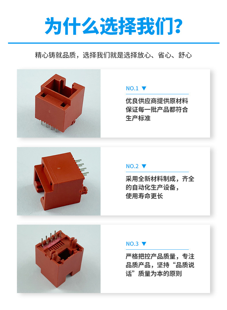 本公司提供優(yōu)良的RJ11、RJ12電話插接件、RJ45網(wǎng)絡(luò)插接件,耐環(huán)境RJ45防水連接器,防水電連接器及其它精密連接器,產(chǎn)品應(yīng)用于網(wǎng)絡(luò)通訊(電腦主板,網(wǎng)絡(luò)交換機(jī),路由器,電信設(shè)備)、惡劣環(huán)境下數(shù)據(jù)傳輸與控制及電源信號(hào)傳輸與控制(戶外LED顯示屏、機(jī)器控制、工業(yè)程序控制等)
